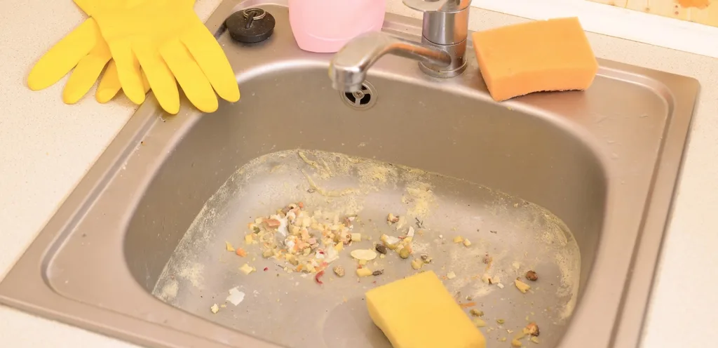 ترك بقايا الطعام على الأطباق ووضعها مباشرة في حوض المطبخ يساهم في تراكم المواد العضوية داخل الأنابيب.